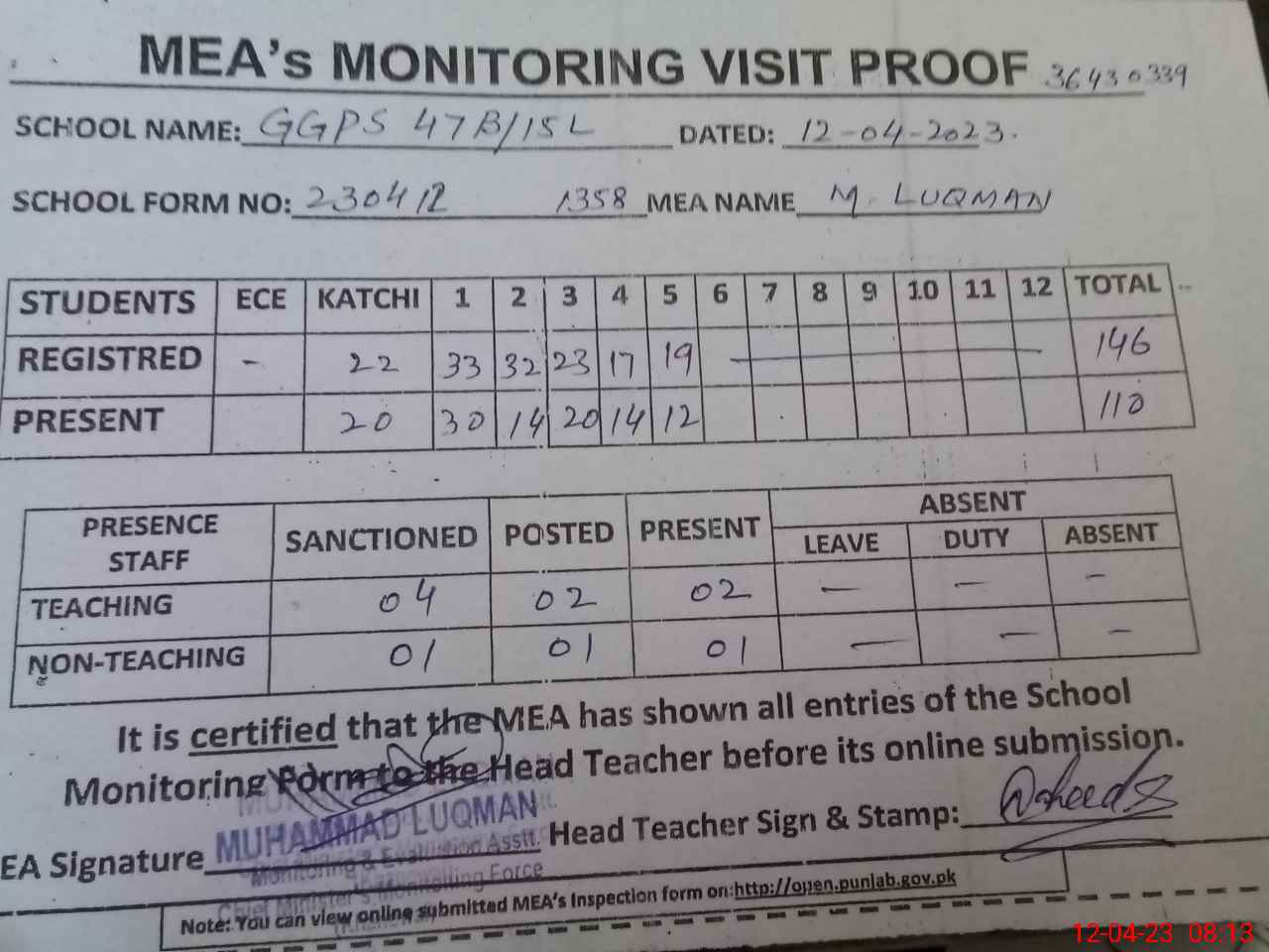 | EMIS Code: 36430339 | Name of School: GGPS 47-B/15-L, MIAN CHANNU | |||