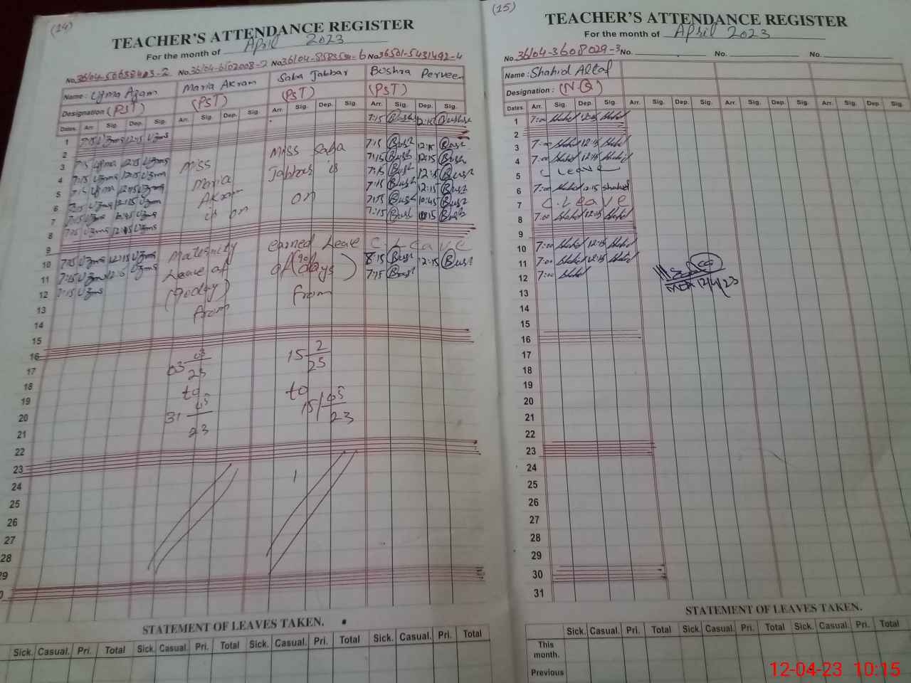 | 36**** | Ma**** Ak**** | PST | Regular | 29 | 0 | 0 | 29 | 0 | 0 | 0 | 0 | 0 | Maternity |