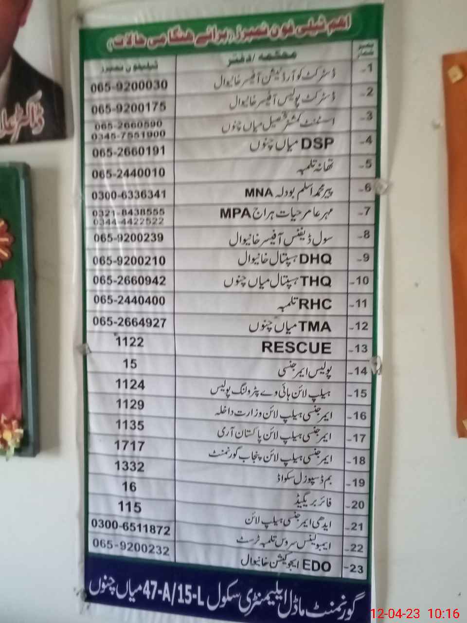 | EMIS Code: 36430297 | Name of School: GMES 47-A/15-L, MIAN CHANNU | |||