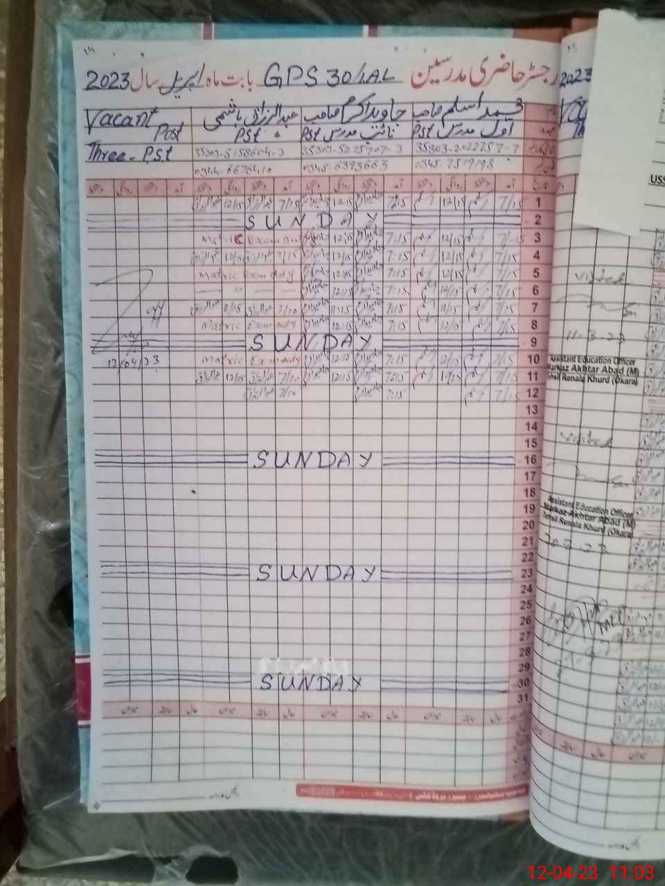 | Name: Za**** Ab**** Designation: (School Headmaster's/Headmistress's) PST Phone/Cell Number: 03**** |