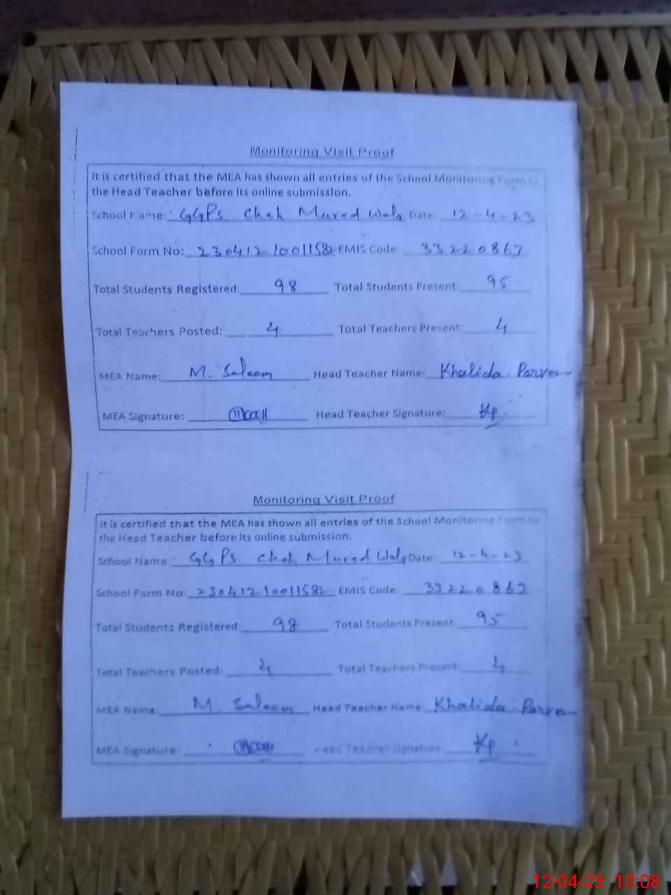 | EMIS Code: 33220863 | Name of School: GGPS CHAH MURAD WALA | |||