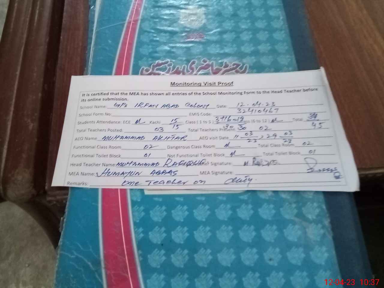 | EMIS Code: 32410467 | Name of School: GPS IRFAN ABAD COLONY | |||