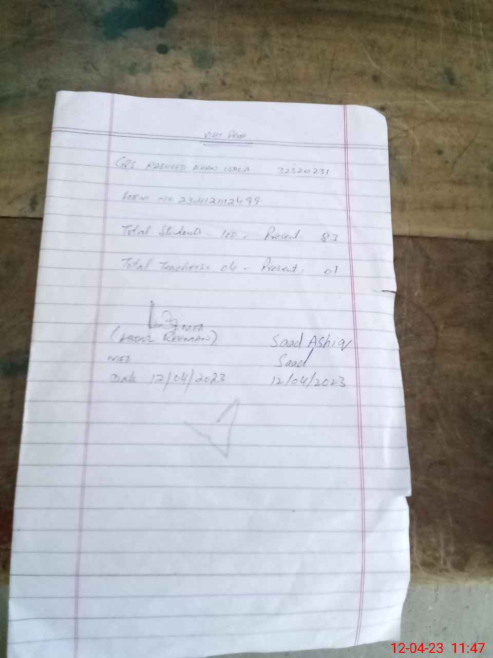| EMIS Code: 32320231 | Name of School: GPS RASHEED KHAN WALA | |||