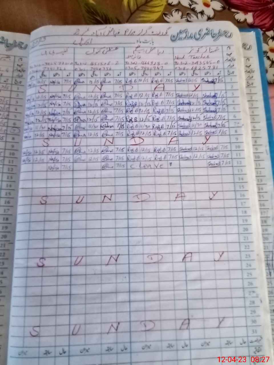 | Name: Sh**** Ko**** Designation: (School Headmaster's/Headmistress's) Pst Phone/Cell Number: 03**** |