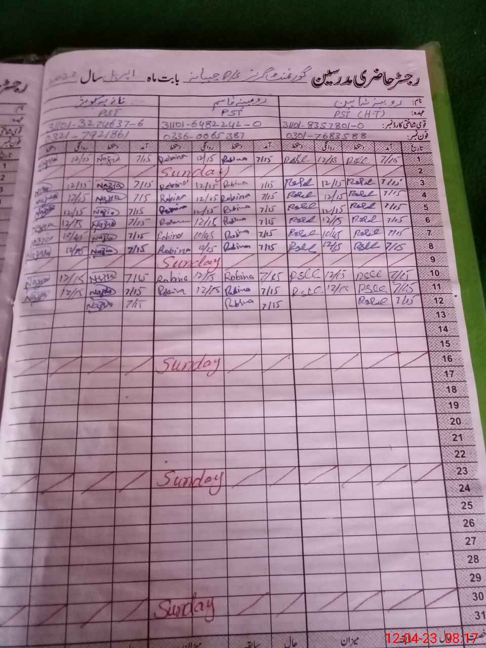 | Name: RO**** Qa**** Designation: (School Headmaster's/Headmistress's) PST Phone/Cell Number: 03**** |