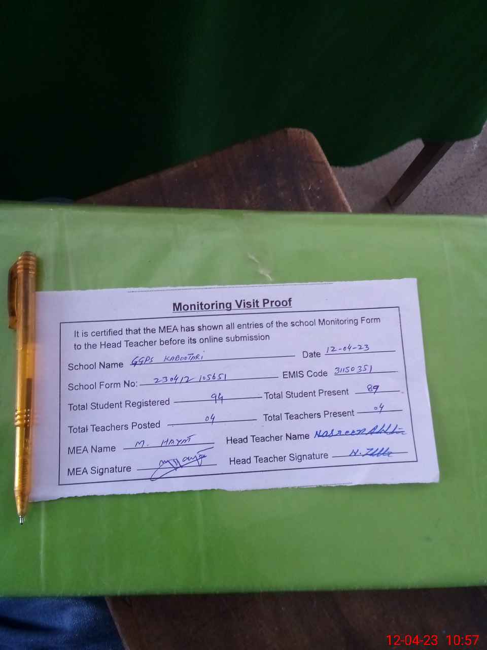 | EMIS Code: 31150351 | Name of School: GGPS KABOOTRI NO. 1 | |||