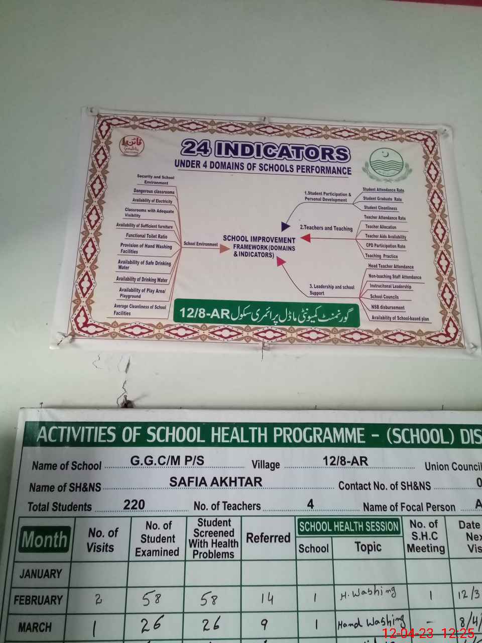 | Total no. of Classrooms: 8 No. of Classrooms Used for Teaching: 6 No. of Classrooms Storing Old Furniture, FTBs, etc: 0Comments if Any: BOYS PORTION FOUND LOCKED AND NOT IN USE |