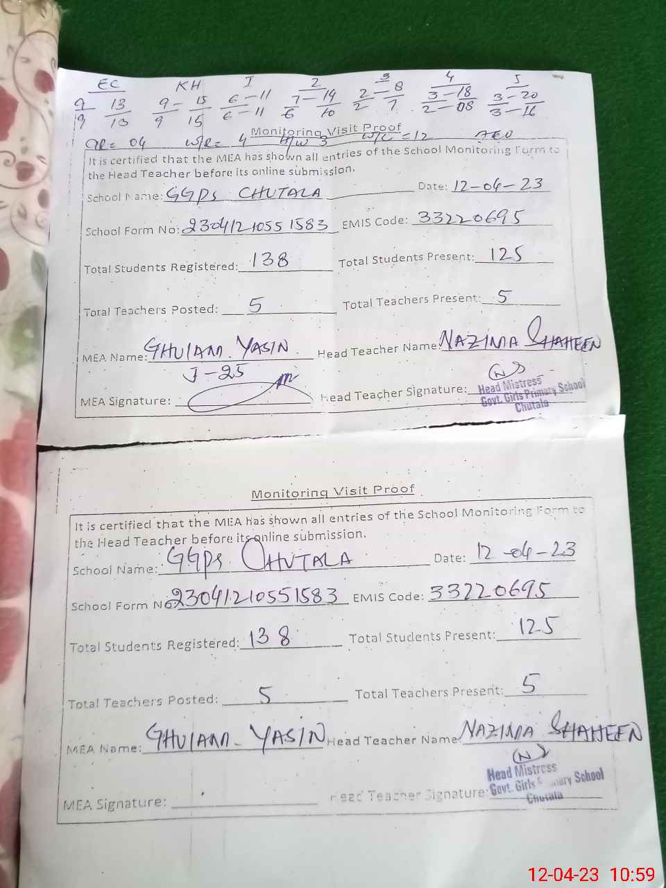 | EMIS Code: 33220695 | Name of School: GGPS CHUTALA | |||