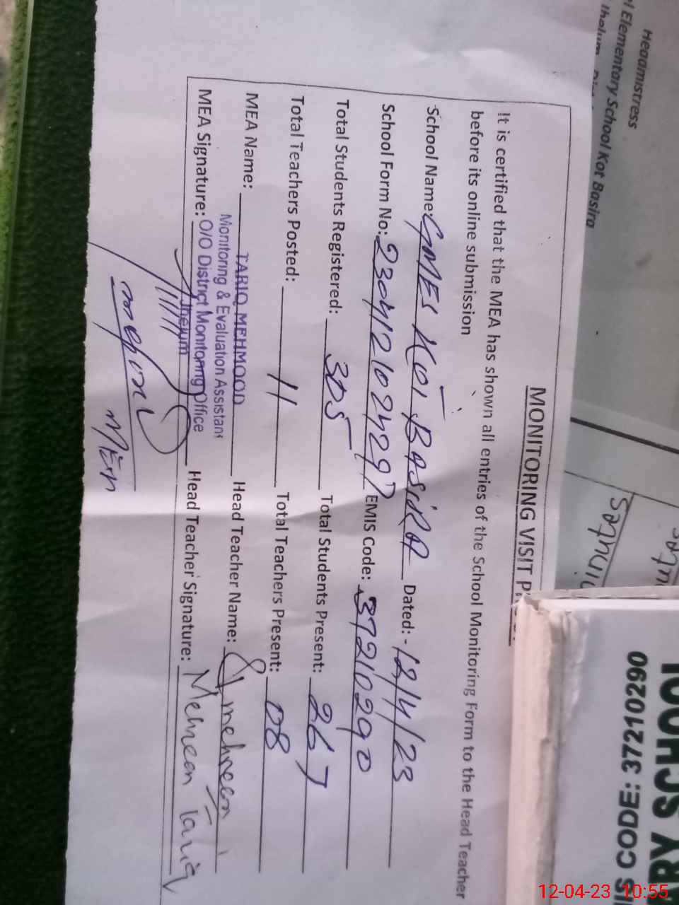 | EMIS Code: 37210290 | Name of School: GMES KOT BASIRA | |||