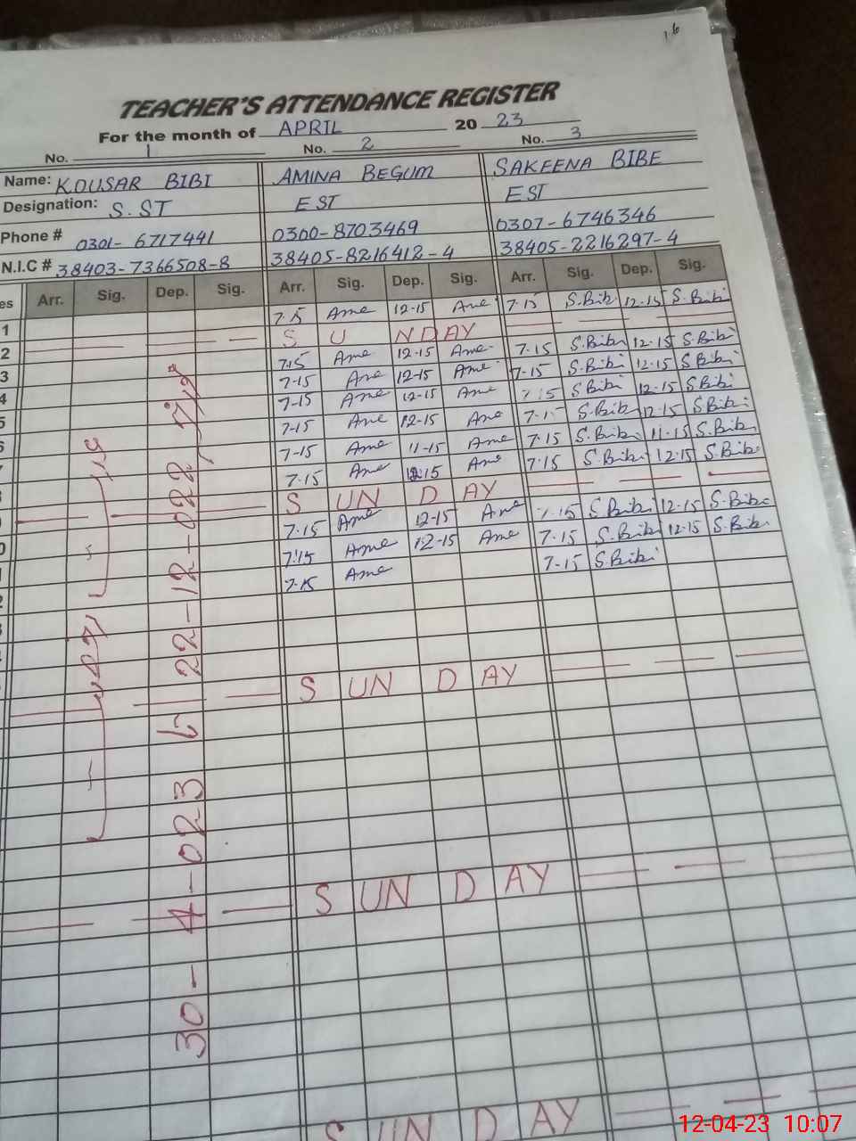 | Name: As**** Sh**** Designation: (School Headmaster's/Headmistress's) SST SCI Phone/Cell Number: 03**** |