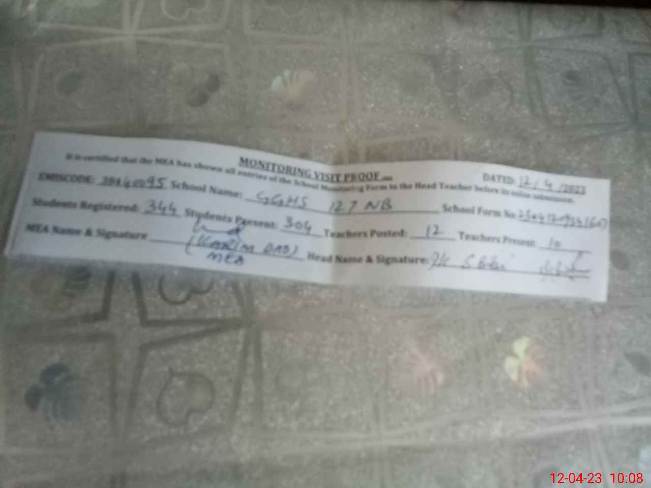 | EMIS Code: 38440095 | Name of School: GGHS CHAK NO. 127 NB | |||