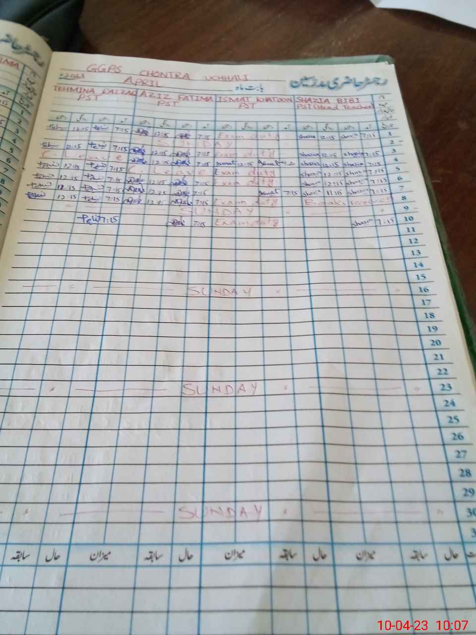 | 38**** | Is**** Kh**** | PST | Regular | 2 | 1 | 0 | 0 | 0 | 0 | 0 | 0 | 2 | Exam Duty |