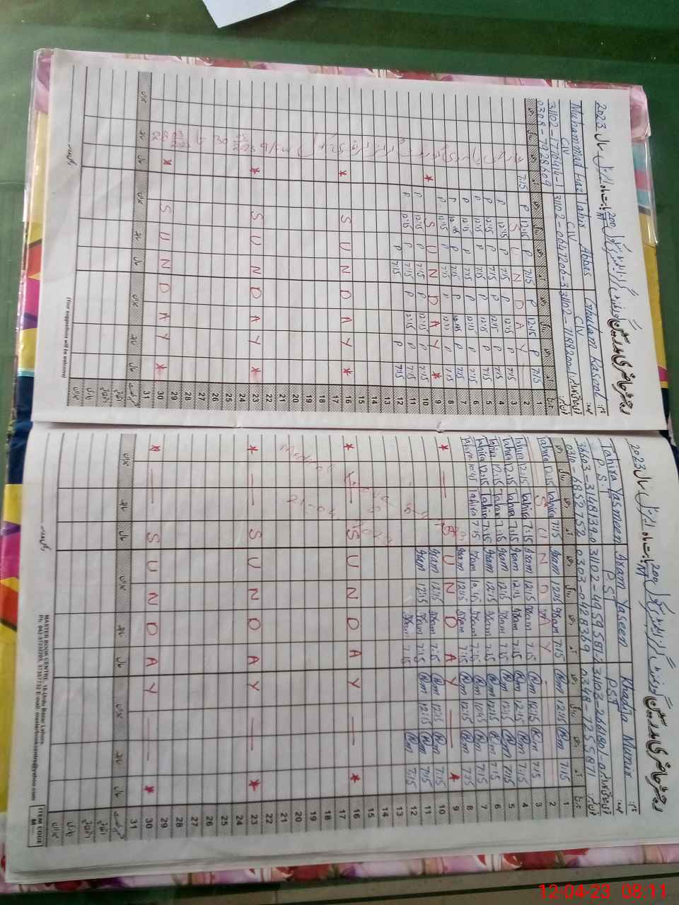 | CNIC | Full Name | Designation | R/C | Absence During Last Calender Month |