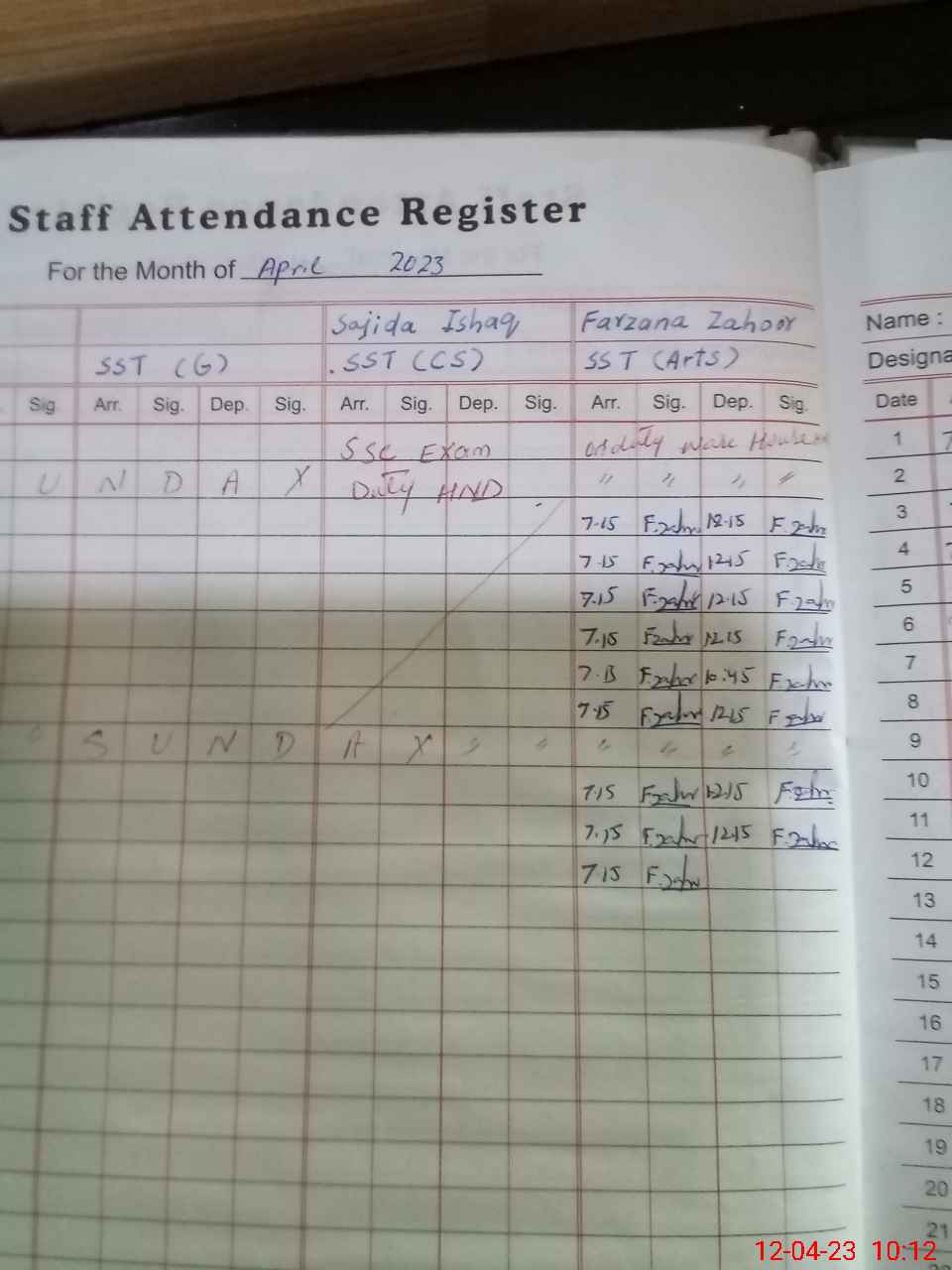 | 31**** | Sa**** Is**** | Regular | 2 | 3 | 0 | 0 | 0 | 0 | 0 | 0 | 2 | Exam Duty | |
