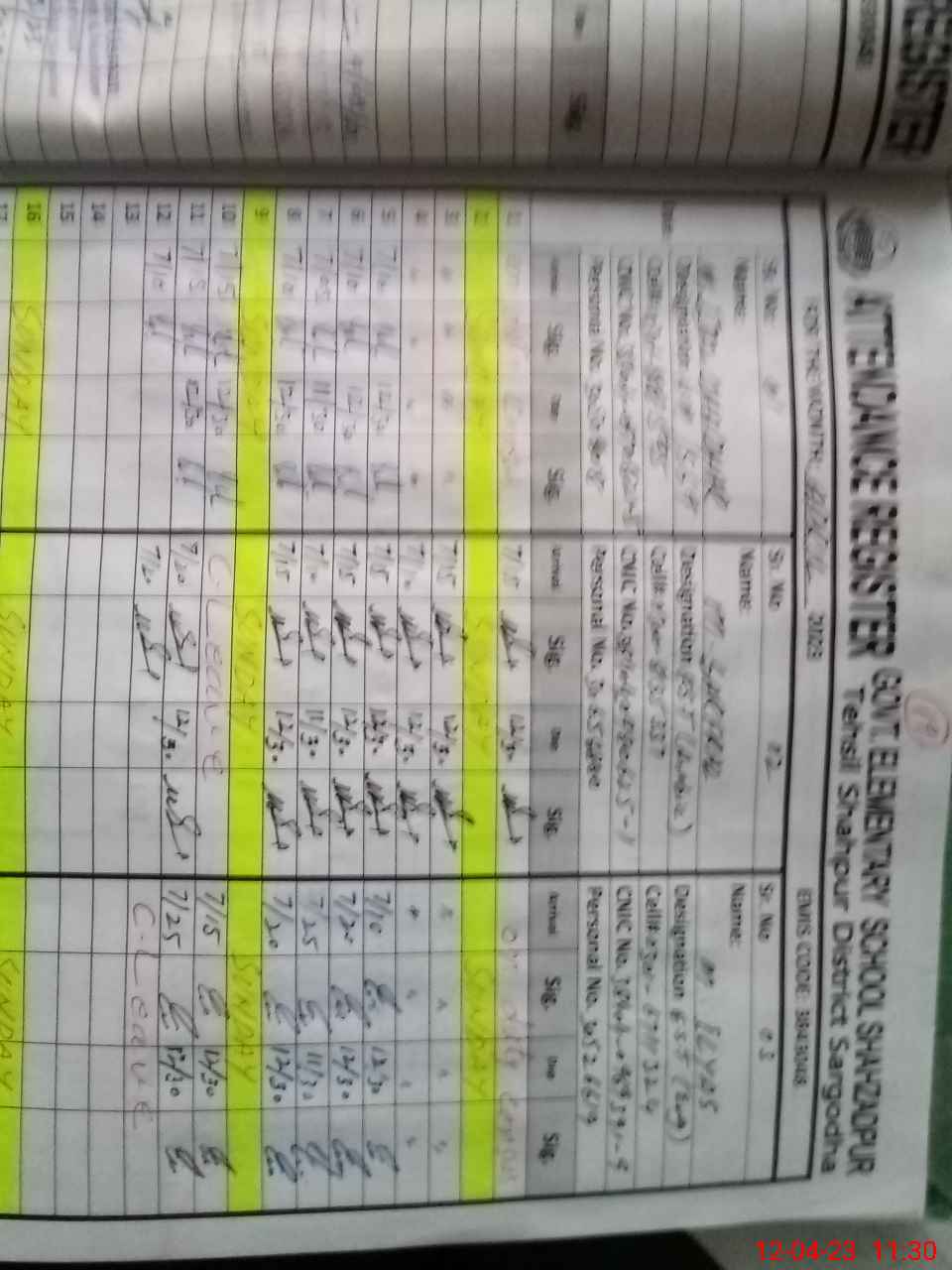 | CNIC | Full Name | Designation | R/C | Absence During Last Calender Month |