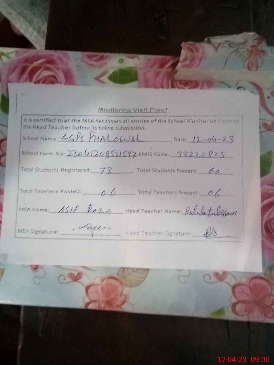 | EMIS Code: 33220825 | Name of School: GGPS PHALOWAL, BASTI NOOR PURA | |||
