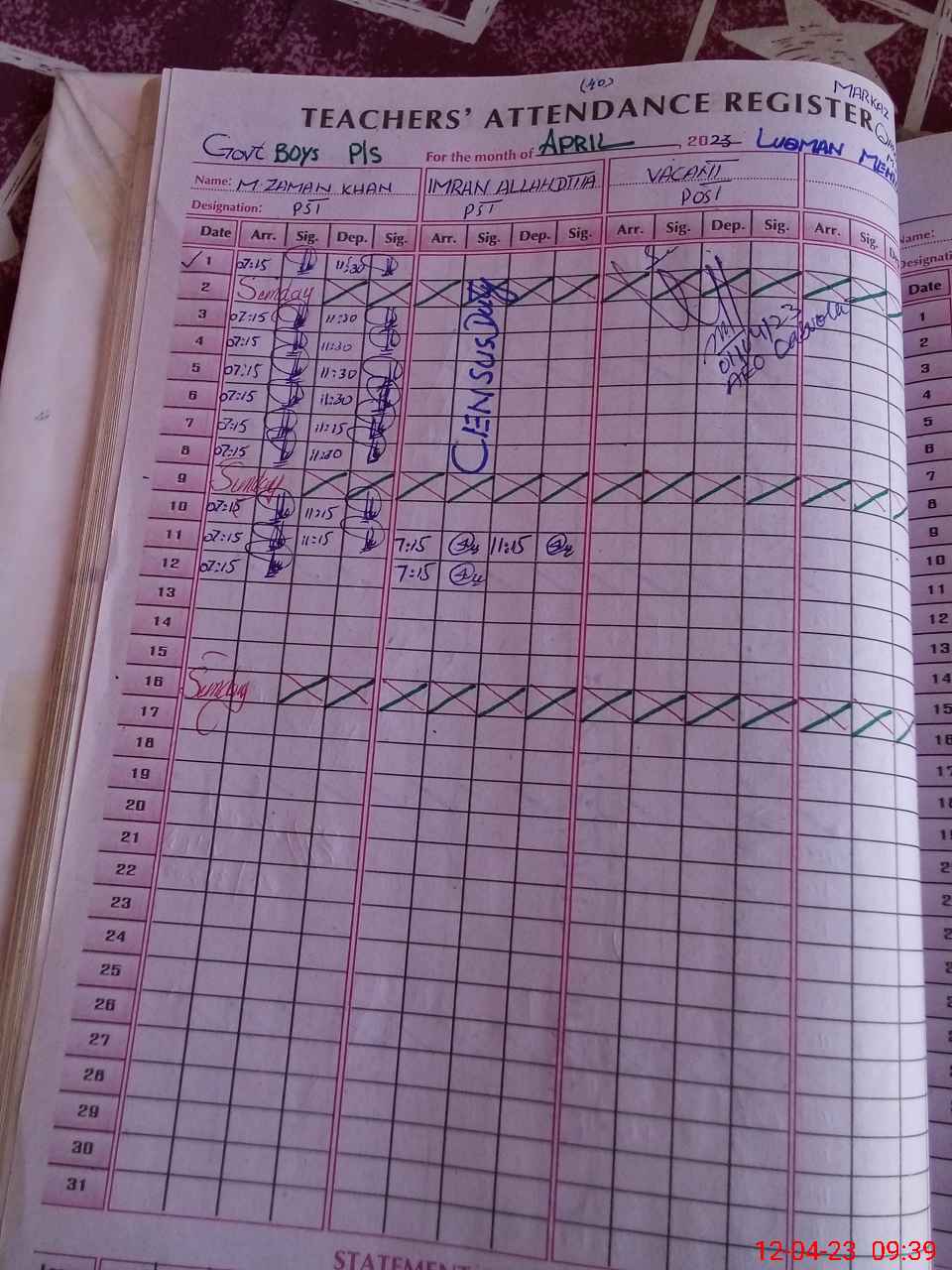 | Name: MU**** ZA**** Designation: (School Headmaster's/Headmistress's) PST Phone/Cell Number: 03**** |