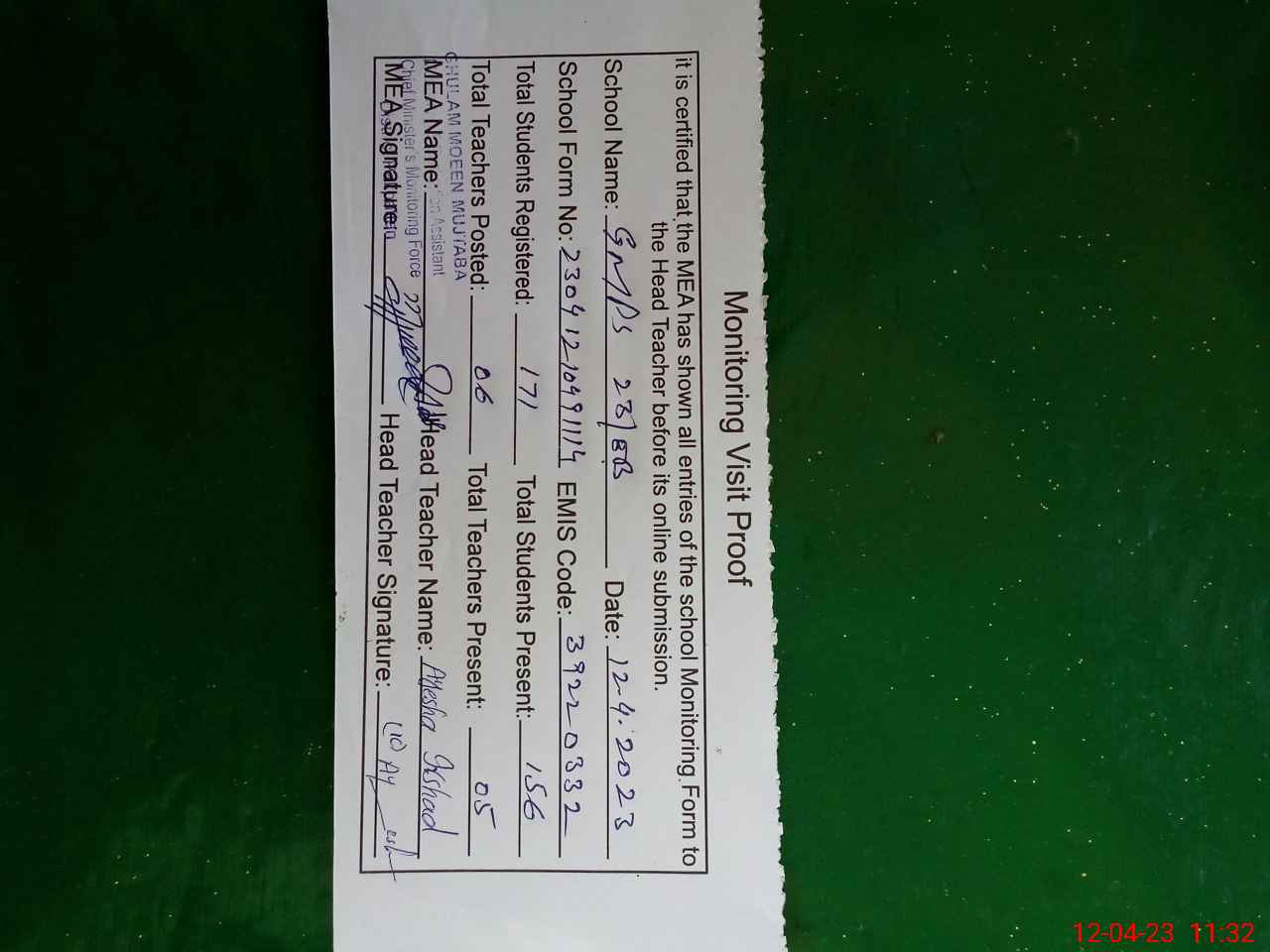 | EMIS Code: 39220332 | Name of School: GMPS CHAK NO. 23 EB | |||