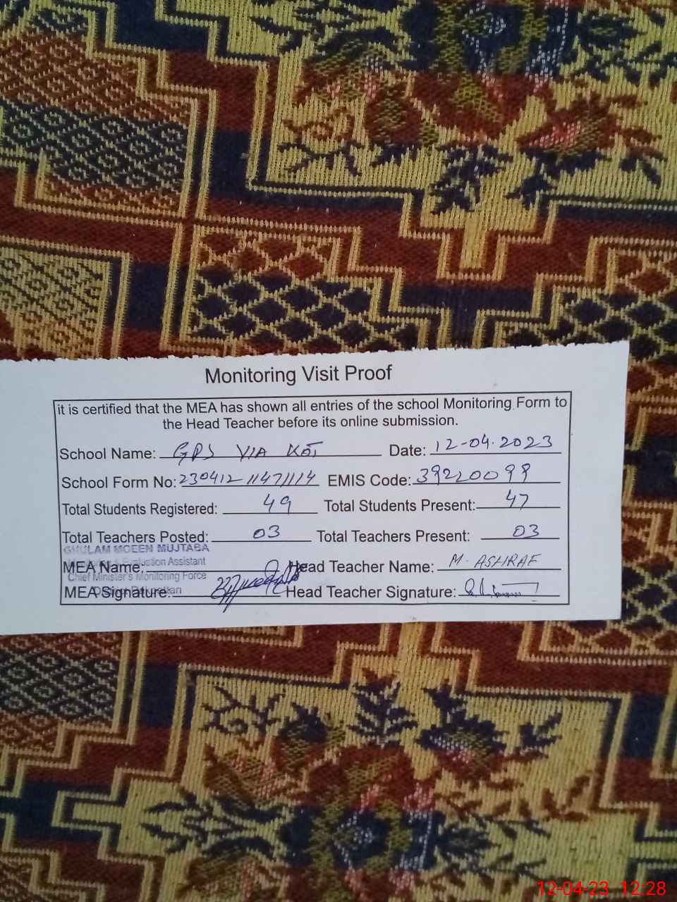 | Monitoring Date: 12-04-2023 | Start Time: 12-04-2023 11:47 AM | End Time: 12-04-2023 12:28 PM | Name of MEA: Gh**** Mu**** Mu**** (R**** | |