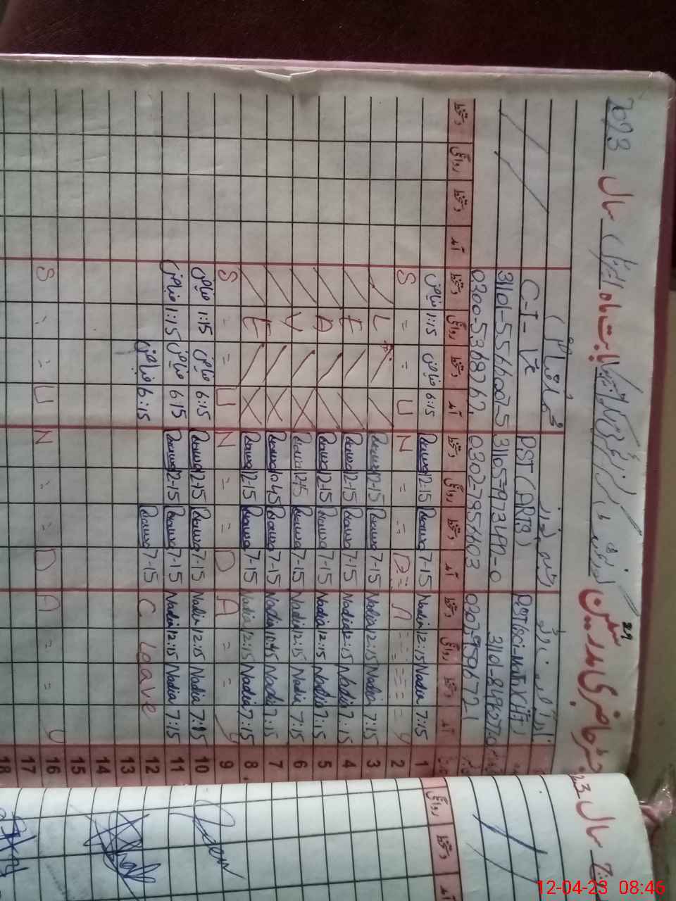 | CNIC | Full Name | Designation | R/C | Absence During Last Calender Month |