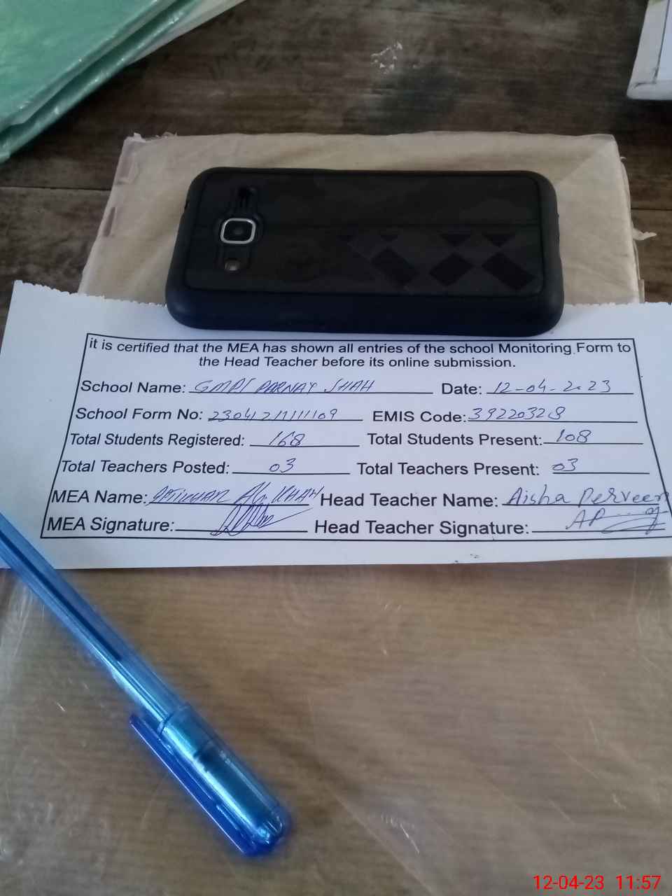 | Attendance Register | Head Teacher | MEA with School | Visit Proof |
