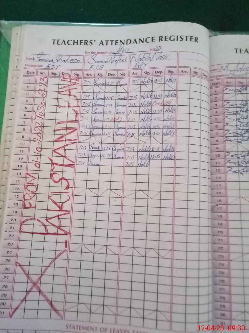 | Name: NA**** NA**** Designation: (School Headmaster's/Headmistress's) PST Phone/Cell Number: 03**** |