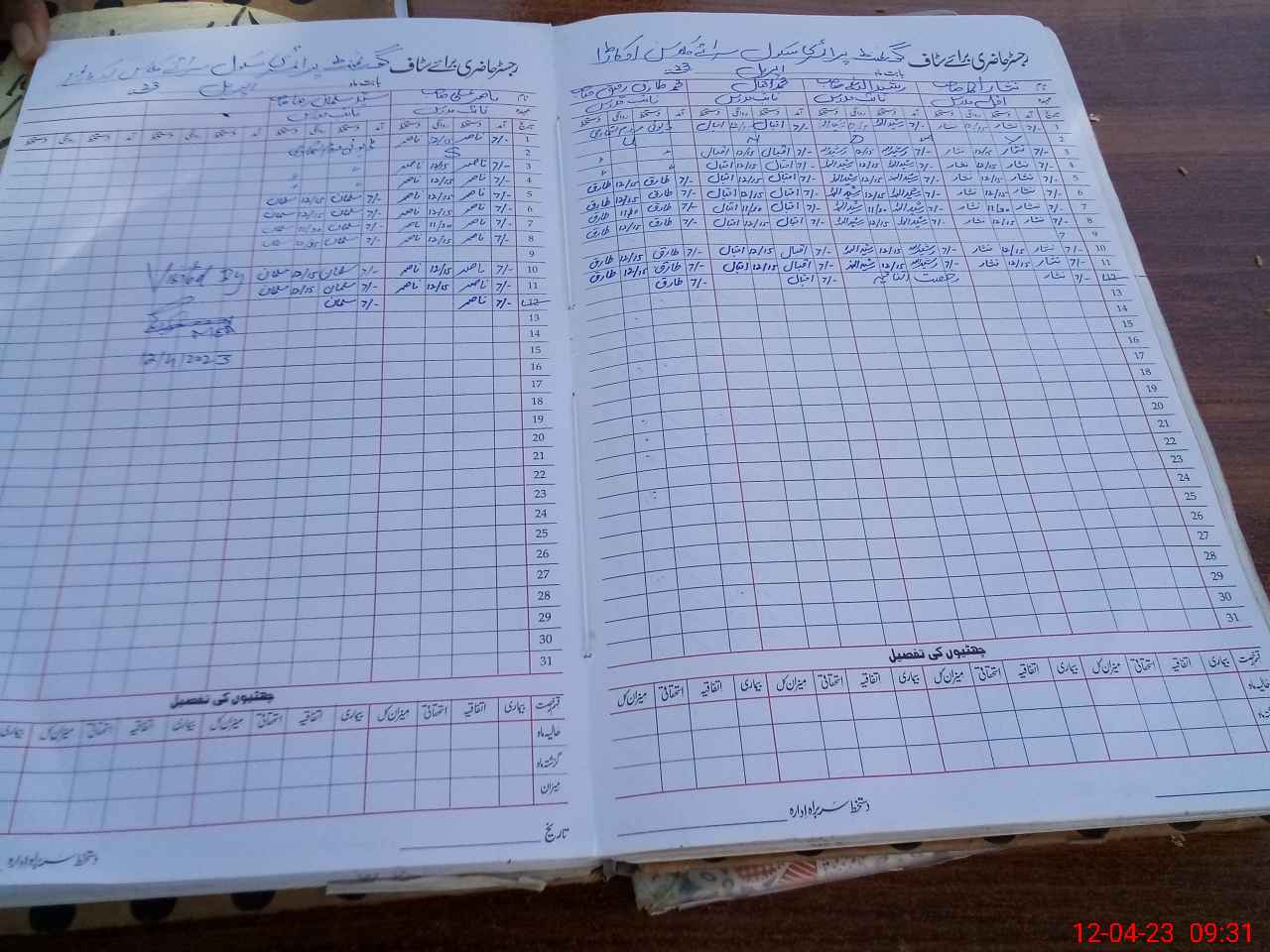 | CNIC | Full Name | Designation | R/C | Absence During Last Calender Month |