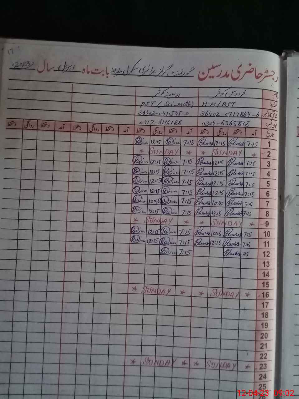 | Name: RU**** KO**** Designation: (School Headmaster's/Headmistress's) PST Phone/Cell Number: 03**** |