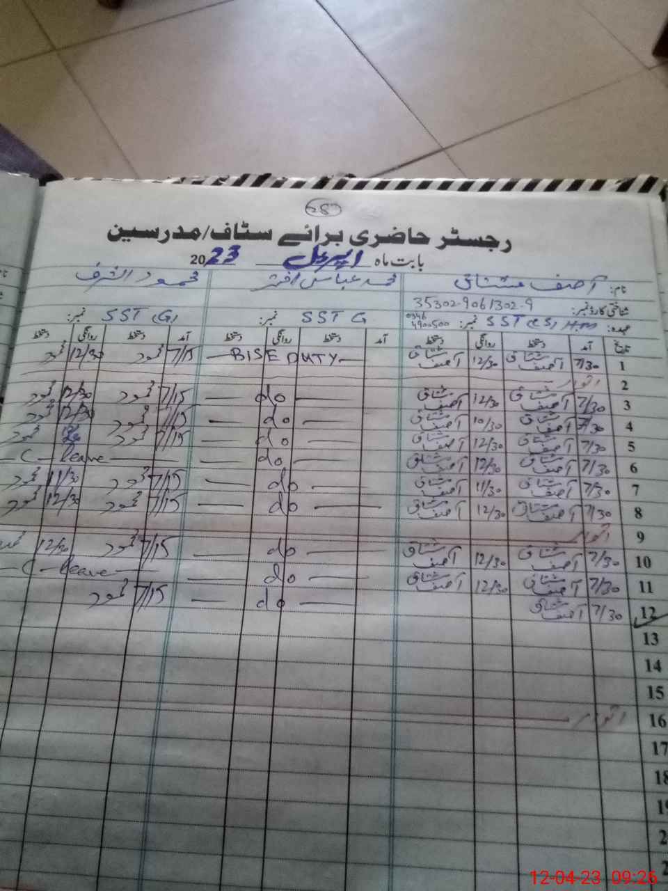 | 35**** | Mu**** Ab**** Ak**** | Regular | 0 | 0 | 0 | 0 | 0 | 0 | 0 | 0 | 0 | Exam Duty | |