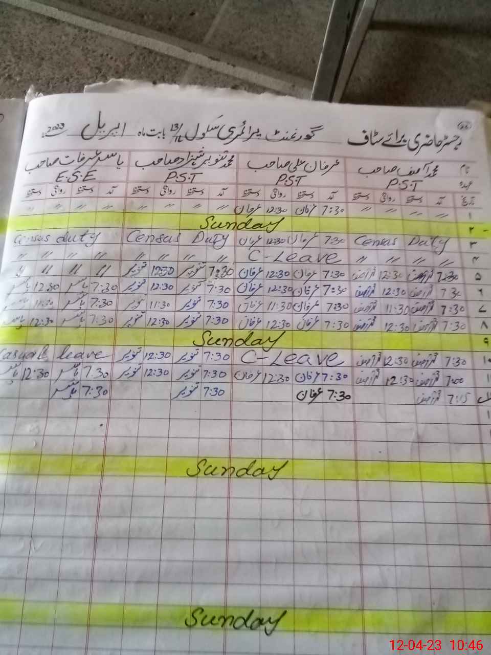 | CNIC | Full Name | Designation | R/C | Absence During Last Calender Month |