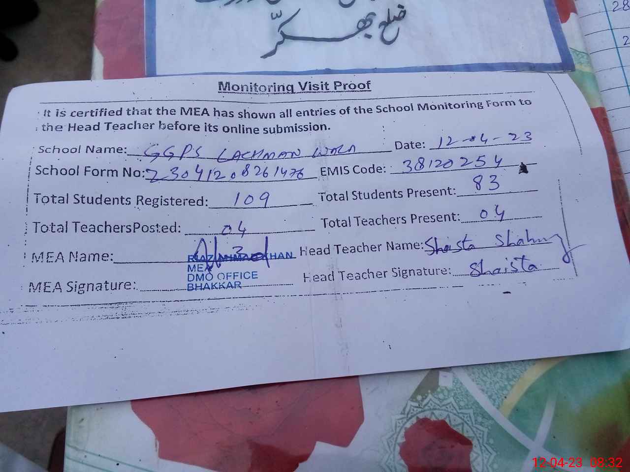 | EMIS Code: 38120254 | Name of School: GGPS LUCHMAN WALA | |||