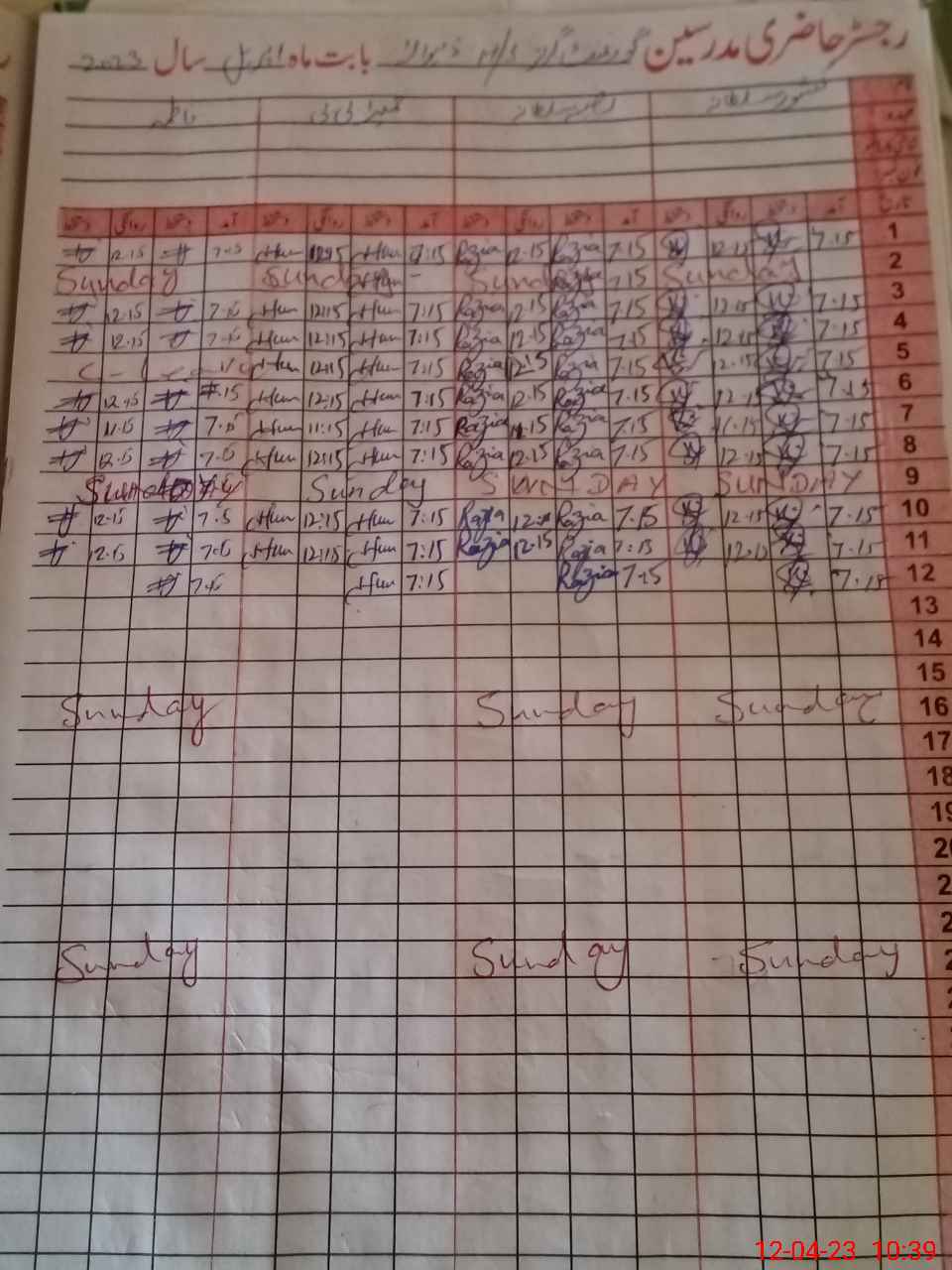 | CNIC | Full Name | Designation | R/C | Absence During Last Calender Month |