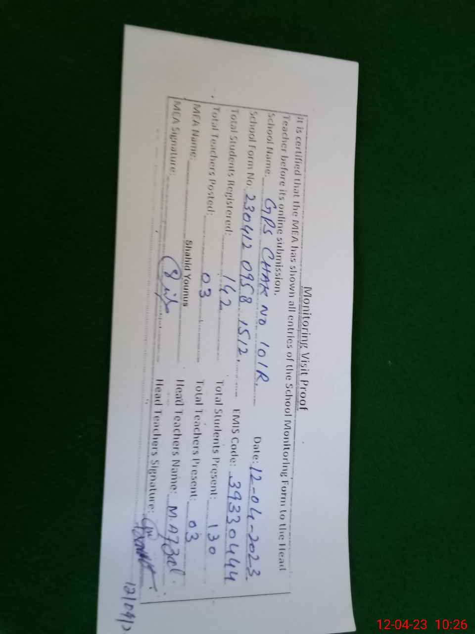 | EMIS Code: 39330444 | Name of School: GPS CHAK NO. 10/1-R | |||