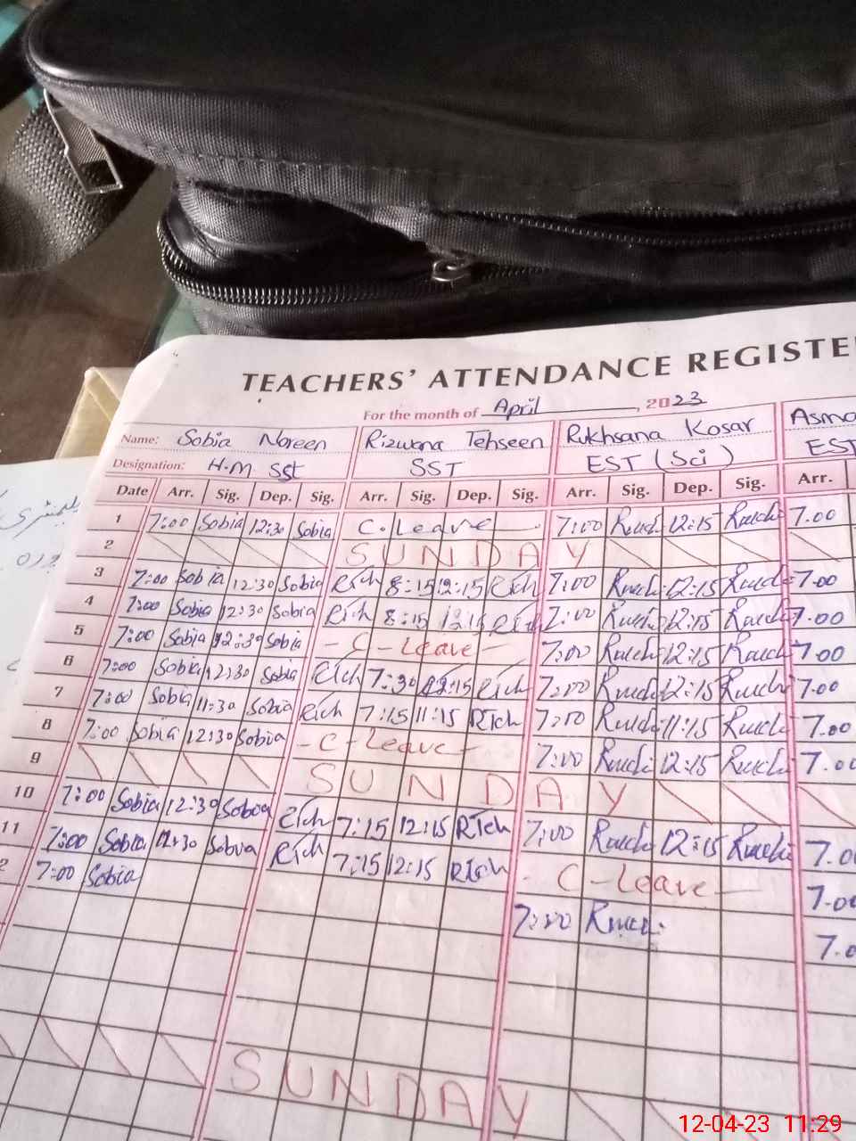| CNIC | Full Name | Designation | R/C | Absence During Last Calender Month |