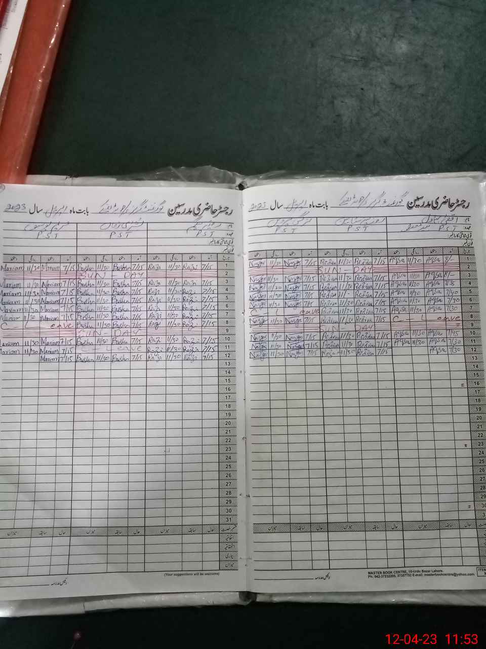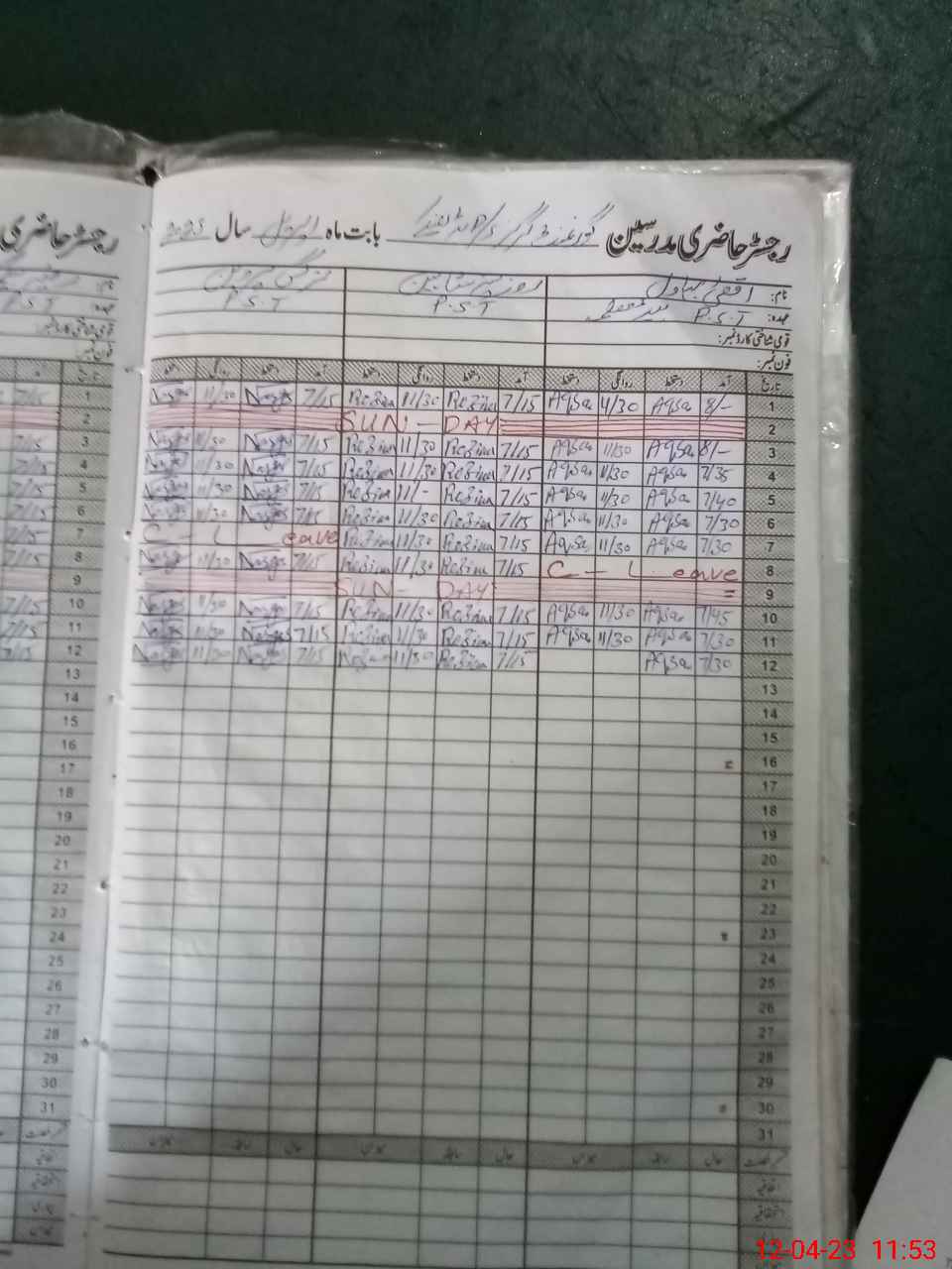 | CNIC | Full Name | Designation | R/C | Absence During Last Calender Month |