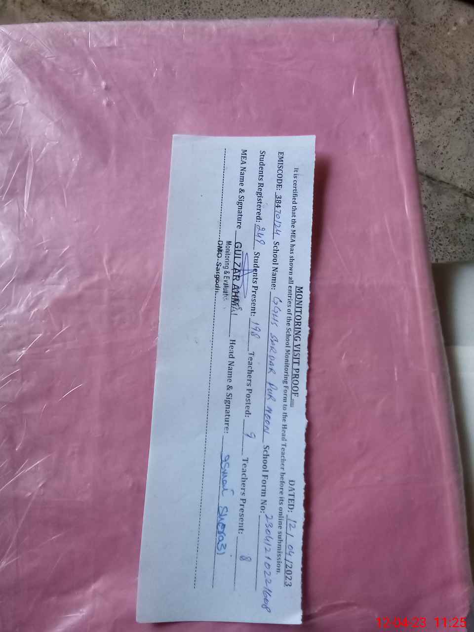 | EMIS Code: 38470124 | Name of School: GGHS SARDAR PUR NOON | |||