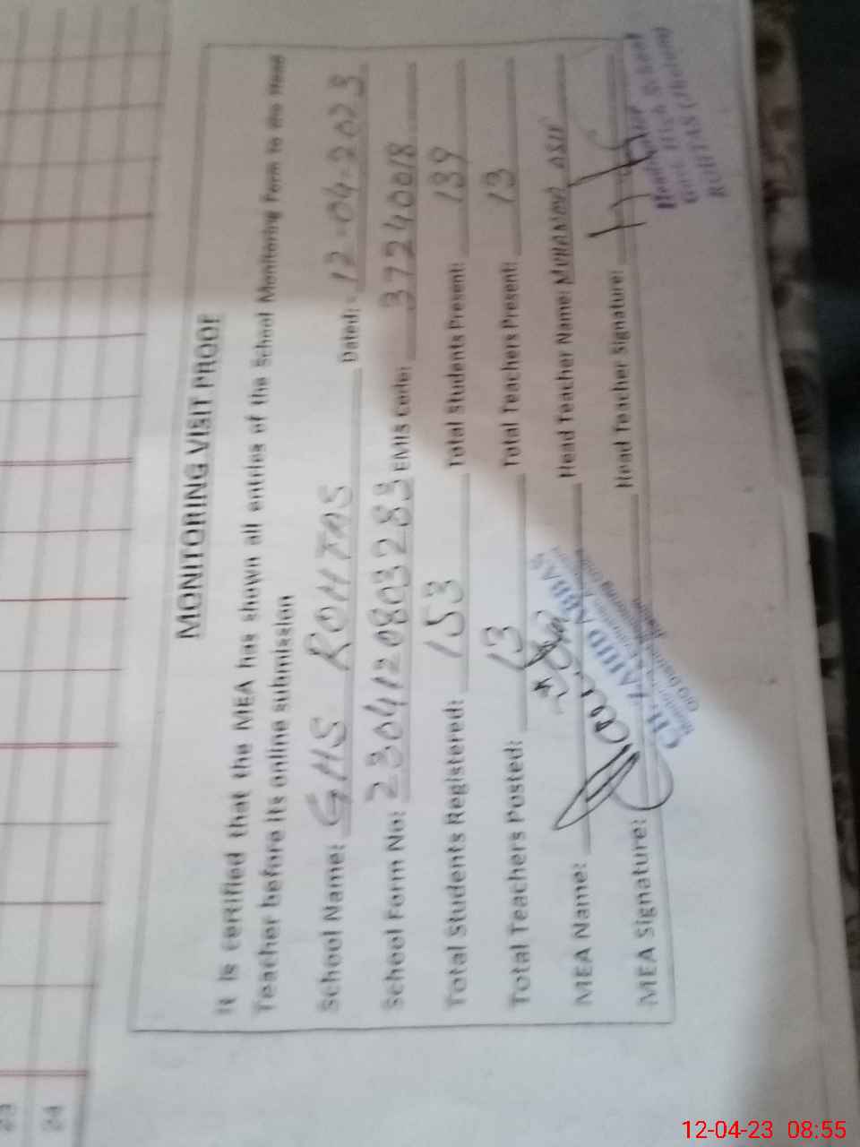 | EMIS Code: 37240018 | Name of School: GHS ROHTAS | |||