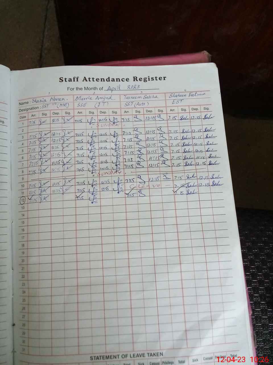 | Monitoring Date: 12-04-2023 | Start Time: 12-04-2023 09:32 AM | End Time: 12-04-2023 10:28 AM | Name of MEA: Za**** Ab**** | |