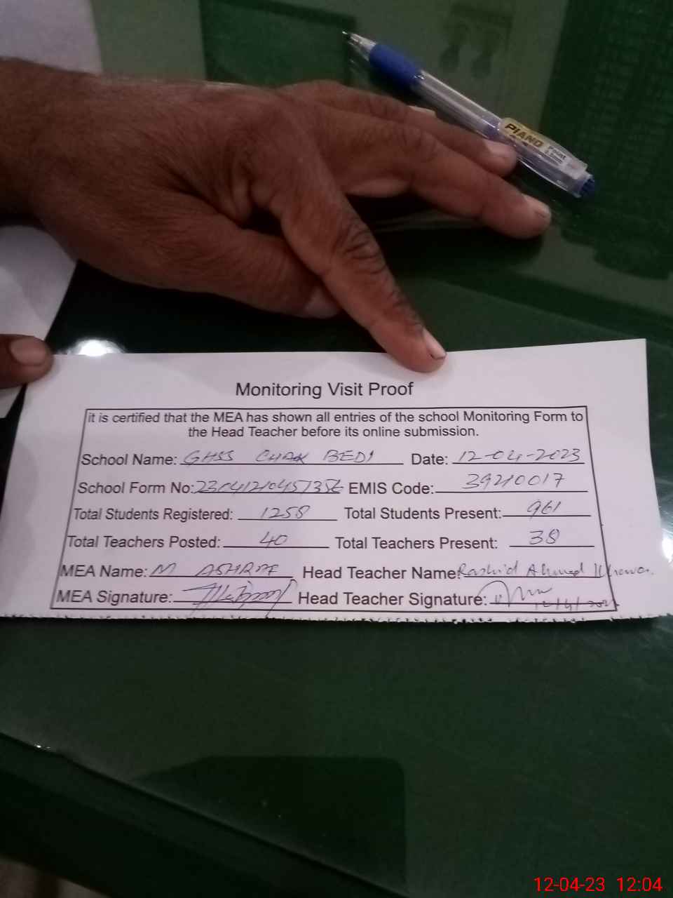 | EMIS Code: 39210017 | Name of School: GHSS CHAK BEDI | |||