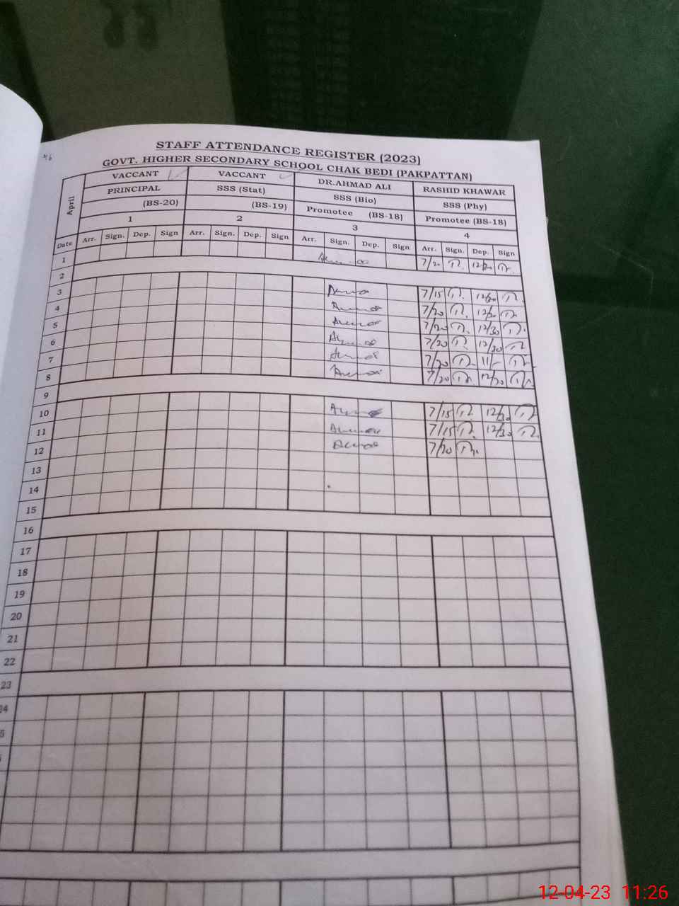 | District: PAKPATTAN | Tehsil: PAKPATTAN | Markaz: SECONDARY-WING | Level: H.Sec. | |