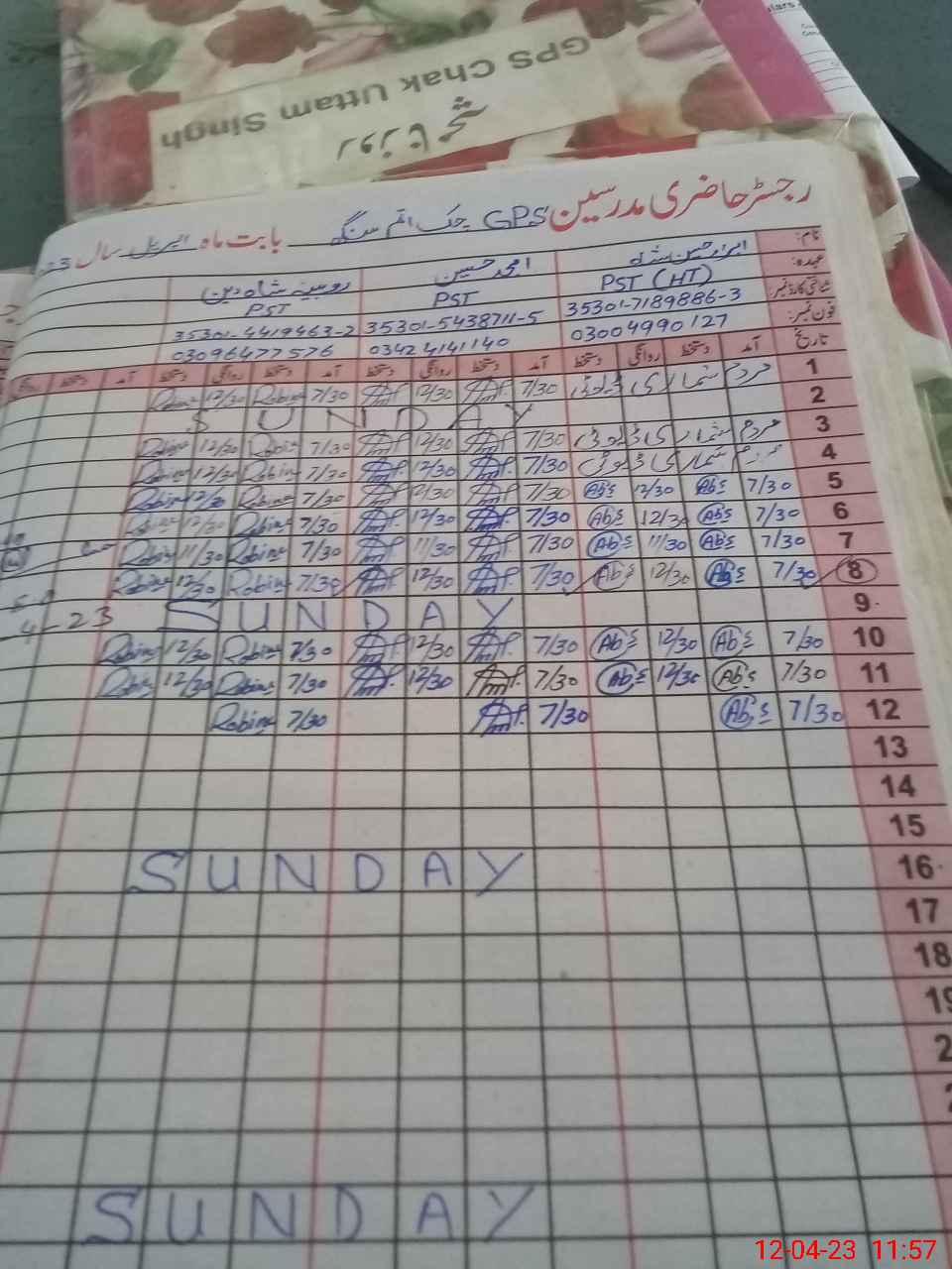 | Name: AB**** HU**** SH**** Designation: (School Headmaster's/Headmistress's) PST Phone/Cell Number: 03**** |