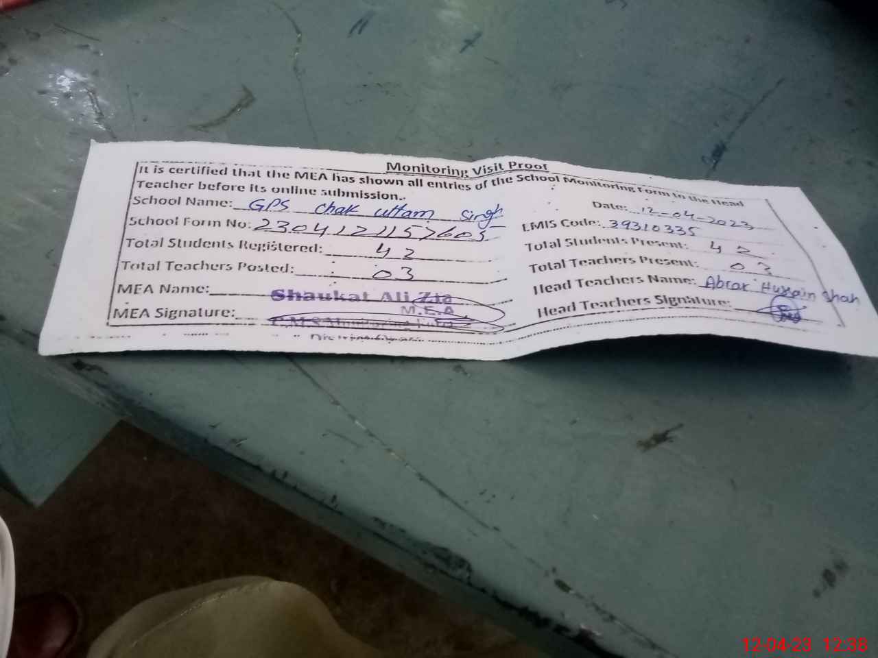 | EMIS Code: 39310335 | Name of School: GPS CHAK UTTAM SINGH | |||