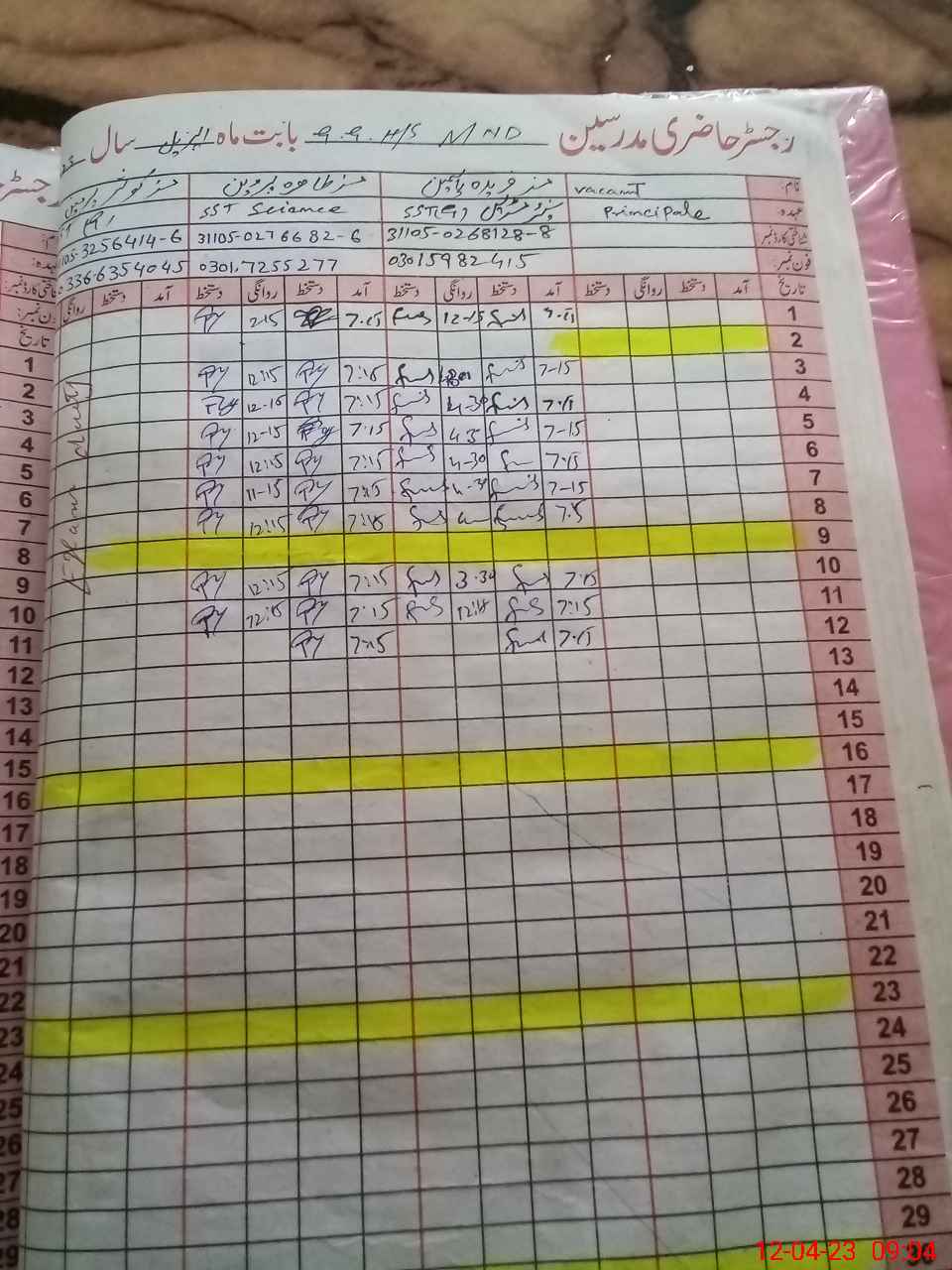 | Name: Ya**** Ak**** Designation: (School Headmaster's/Headmistress's) Principal Phone/Cell Number: 03**** |