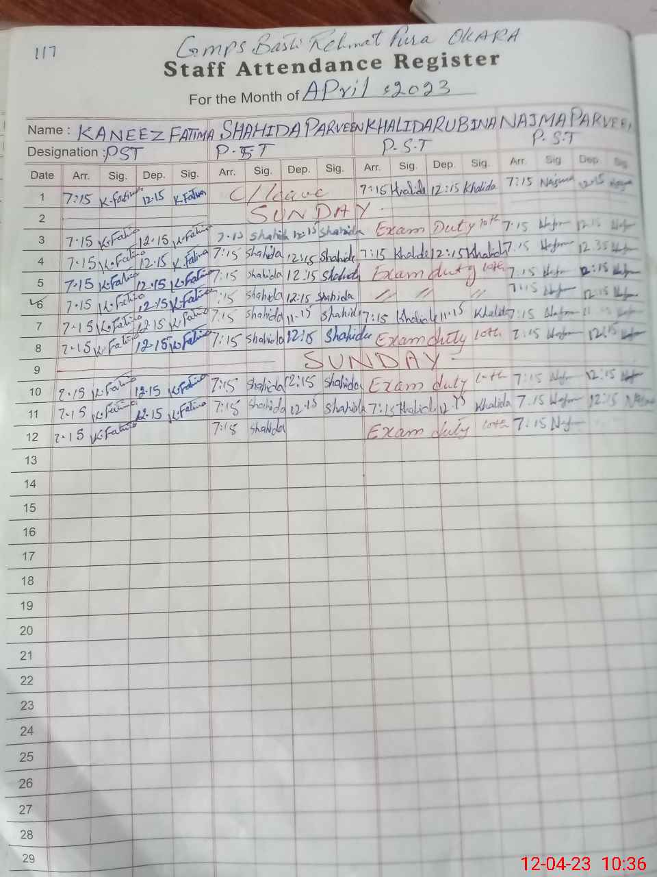 | 42**** | Kh**** Ru**** | PST | Regular | 0 | 0 | 0 | 0 | 0 | 0 | 0 | 0 | 0 | Exam Duty |