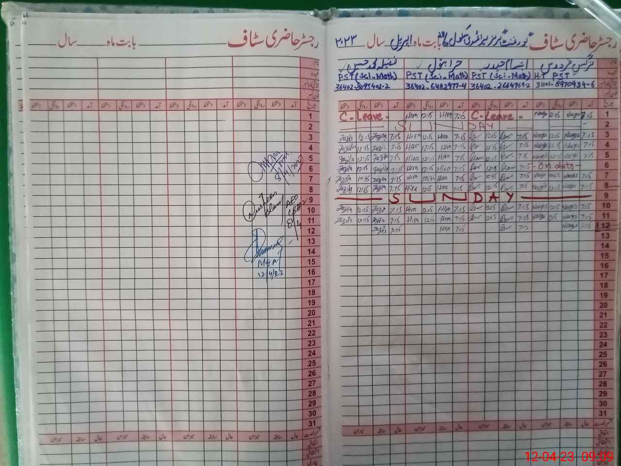 | Name: Ib**** Ha**** Designation: (School Headmaster's/Headmistress's) PST Phone/Cell Number: 03**** |