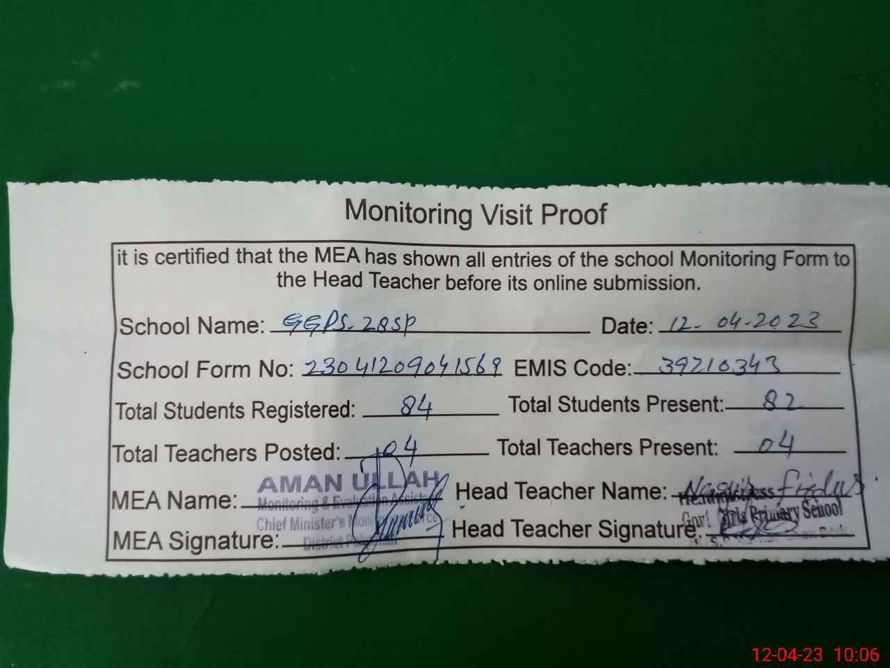 | EMIS Code: 39210343 | Name of School: GGPS 28 SP | |||