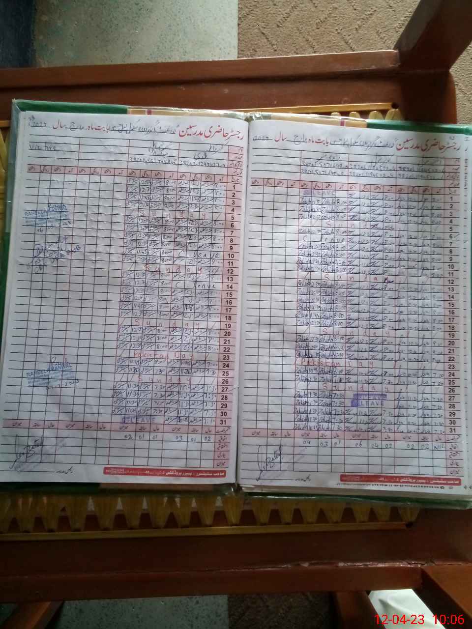 | CNIC | Full Name | Designation | R/C | Absence During Last Calender Month |