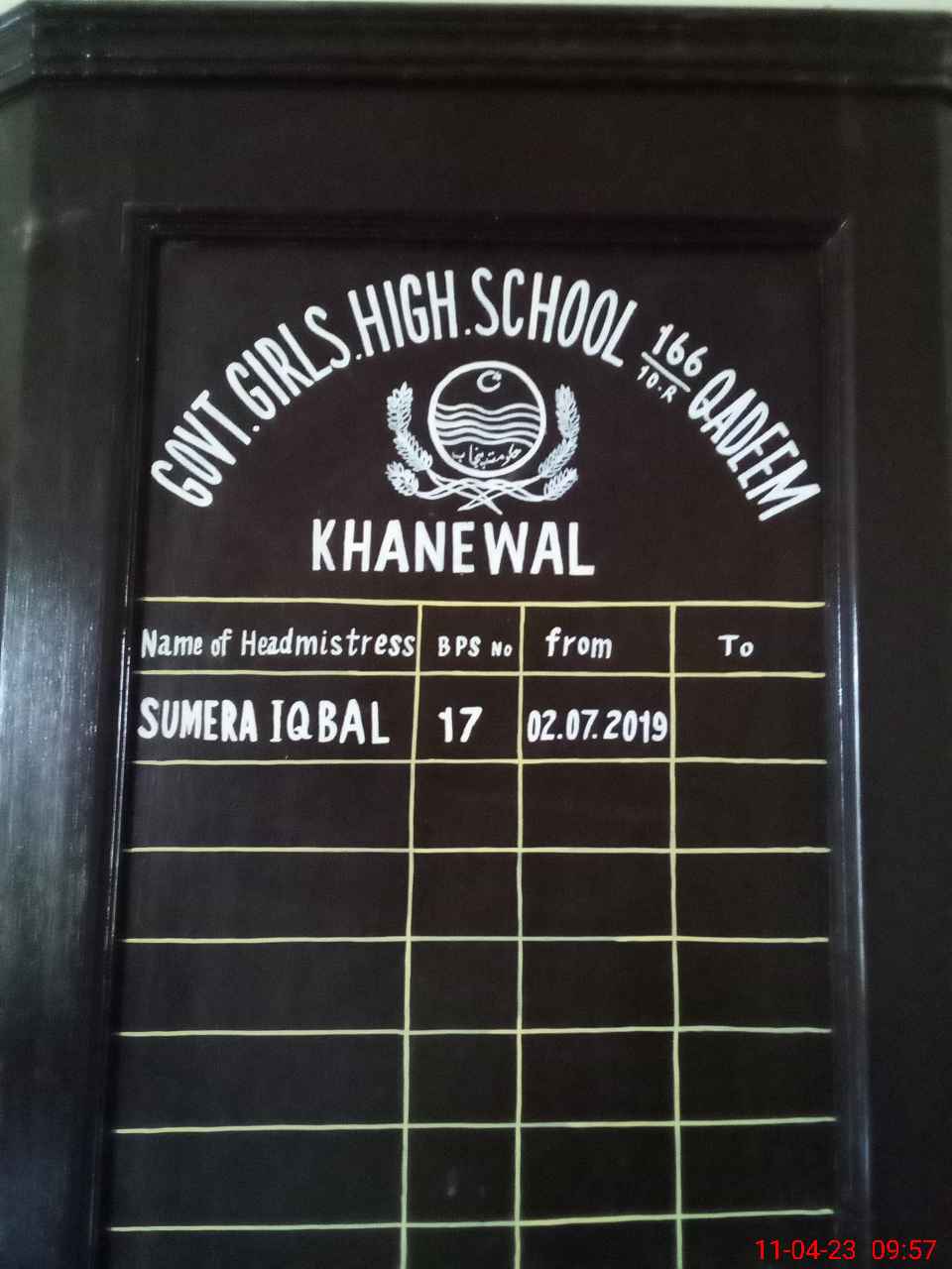 | EMIS Code: 36420419 | Name of School: GGHS 166/10-R QADEEM, KHANEWAL | |||