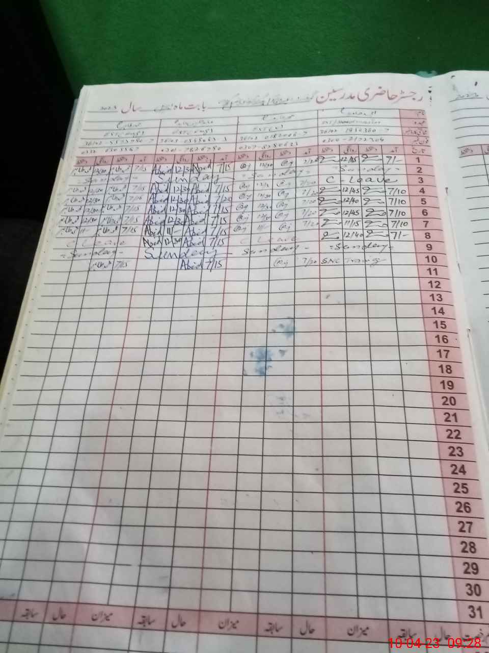 | CNIC | Full Name | Designation | R/C | Absence During Last Calender Month |