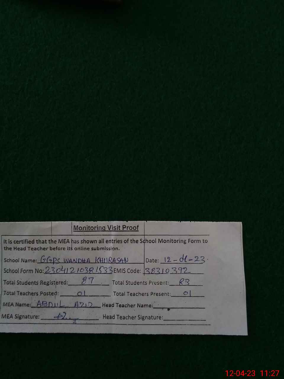 | EMIS Code: 38310392 | Name of School: GGPS WANDHA KHURASAN SAIF ULLAH | |||
